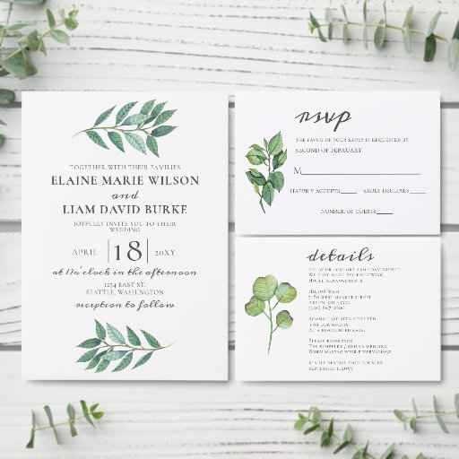 Watercolor Foliage Greenery Wedding invitationsOntworpen door Maria G