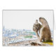 Dit schilderij van de waterverf was geïnspireerd op een foto die ik nam terwijl ik klom naar de top van de klokkentoren van Notre Dame in Parijs, Frankrijk. Het klimmen naar boven begint in een smalle, spiraalvormige trap van steen. Na 422 stappen bereikt u de bovenkant waar u een expansief uitzicht van Parijs en de Eiffeltoren ver in de afstand ziet. Langs de manier waarop je vele gargoylen tegenkomt (of beter "Chimera's"). Deze specifieke gargoyle die naar Parijs kijkt heet de "spitterende gargoyle".