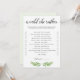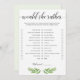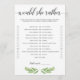 Wie kent de beste bruid? Ik zie het uit met deze leuke trouwdouche "Zou ze liever" spel. Deze spelkaarten met prachtige groene bladeren zouden perfect zijn voor een groen vrijgezellenfeest met de naam greenery. Laat de bruid haar spelkaart invullen voor het vrijgezellenfeest met de keuzes die ze zou kiezen. Op het vrijgezellenfeest, geef een pen en de kaarten aan de gasten uit en laat hen de keuzen controleren die zij denken de bruid-aan-te heeft uitgekozen. De persoon met de meest correcte antwoorden wint!