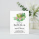 Tropische en feestelijke tropische bridale doucheuitnodiging. Het is voorzien van waterverf kokosnoot, roze hibiscus, plumeria en tropische groen. Deze kokosnootuitnodiging is perfect voor tropische en luau-vrijgezellenfeesten. Personaliseer u door uw gegevens toe te voegen.