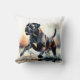 Een krachtige en majestueuze Cane Corso-hond, met name een groot ras, die vrolijk door een ondiepe plas water springt en er spatten omheen creëert. De scène is gevuld met dynamische beweging, die de gespierde lichaamsbouw en expressieve kenmerken van de hond laat zien. De achtergrond is een abstracte mix van zachte kleuren, die lijkt op een waterkleurig schilderij, met de nadruk op de levendigheid en energie van het moment. Het licht weerkaatst het water, waardoor de slanke vacht van de hond en de algehele levendige sfeer van de scène worden versterkt.