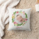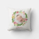 Waterverf krans blush roze gepersonaliseerde foto kussen. Gepersonaliseerd baby geschenk in groen, roze, perzik en blauw geïnspireerd kleurenschema. Ruimte voor een naam.