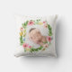 Waterverf krans blush roze gepersonaliseerde foto kussen. Gepersonaliseerd baby geschenk in groen, roze, perzik en blauw geïnspireerd kleurenschema. Ruimte voor een naam.