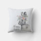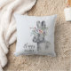 lente-themed-gooikussens hebben grijze waterverf bunny met bloemkroon-afbeelding en aanpasbare Happy Easter-tekst op pastelblauwe achtergrond