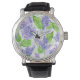 Lila bloemen en takken, geschilderd met waterverf. Patroon gemaakt in Photoshop.
