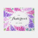 Welkom gasten bij u thuis met deze grillige bloemendeurmat. Deze aanpasbare deurmat is voorzien van roze en paarse waterverf lilacs en gebladerte. Dit zal perfect zijn als een bruiloft en housewarming cadeau. Personaliseer door achternaam en jaar toe te voegen.