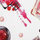 Dit ontwerp biedt de bijbehorende schoonheidsmiddelen in een zacht waterverf patroon.
