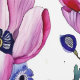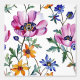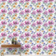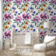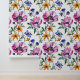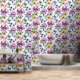 Liefdevolle paarse, blauw en gele waterverf met groen gebladerte. sierlijke volkskunst bloemenbehang.