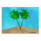 Notitiekaart in een strand scène van tropische palmen, zand en hemel gemaakt van een digitale collage van waterverf en gevlekte afbeeldingen