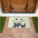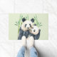 Een deurmat met een leuke waterverf illustratie met een zwart-wit moeder en baby panda beer knuffelen samen. Mama houdt haar welp vast tussen groene bamboestelen