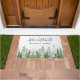 Voeg een vleugje stijl toe aan elk huis met deze super chique deurmat. Deze deurmat heeft een handbeschilderd waterverf dennenbos met trendy typografie "avontuur begint thuis" slogan.