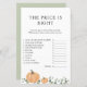 Voeg plezier toe aan uw baby shower met onze schattige waterverf pompoen De prijs is de juiste spelkaarten. Dit item past perfect bij onze kleine pompoenliks op de uitnodigingssuite van het baby shower. Bezoek onze collecties voor extra kleurvariaties en items om deze uitnodigingssuite te begeleiden.