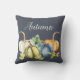 Mooie waterverf pompoenen in tinten blauw, groen, oranje en wit zijn op deze kussen te vinden. U kunt het woord Autumn aanpassen dat aan beide kanten van de kussen is. Verfijn uw gasten en familie voor herfst en Thanksgiving met deze waterverf pompoenkussens.