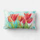 Decoreer je leefruimte met deze tuin en gooi kussens met moderne waterverf rode tulpen op een aqua en witte achtergrond. Ideaal voor Pasen en lentdecor die de hele zomer zal duren. Ontworpen door © Tim Coffey.