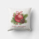 vrolijk kerstfeest | Dit aanpasbare kerstkussen voegt een feestelijk accent toe aan uw kamer. Het beschikt over een aquarel rode bal kerst ornament met dennennaalden, winterbessen en pinecones. Personaliseer door uw gegevens toe te voegen. Dit aangepaste kerstkussen is perfect als een persoonlijk geschenk. Overeenkomende objecten zijn beschikbaar.