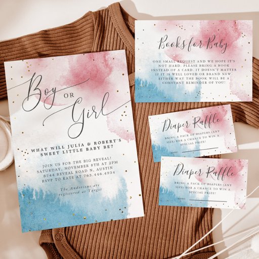 Watercolor Pink Blue Gender Reveal PartyOntworpen door Chiho W