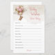 Begin aan een spannende reis met de waterverf roze, bruin en ivoor teddy Dear Baby Wishes game card ontworpen voor een meisje baby shower met het thema "We Can Barly Wait". Deze grillige en avontuurlijke kaart nodigt gasten uit om hun oprechte wensen voor de nieuwe baby te delen, waarbij zachte kleuren worden gecombineerd met een vleugje speelse charme. Laat de wensen van de gasten voor de kleine de toon zetten voor een magisch en onvergetelijk evenement, vol vreugde en anticipatie op het spannende avontuur dat voor u ligt, terwijl u de aanstaande aankomst viert. Contacteer mij voor overeenkomende items of voor maatwerk, Blush Rozen Baby ©