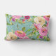 Dit werpkussen heeft een glam aqua glitter achtergrond voor deze vrouwelijke rozen bloemenprint in tinten roze, perzik en crème.