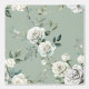 Waterverf Witte rozen in lichtgroen verlof, in lichtgroene achtergrond