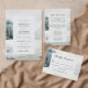 Elementen: schilderij van de waterverf van het plattelands-bergmeer in de winter; elegante serif en sans serif fonts. Kleuren: blauw, groen, grijs, wit, gebroken wit. Thema's: bergen, meren, buitenbruiloft, winterbruiloft, elegant, roest, indrukwekkend, waterverf, sneeuwbergen. Collectie: Rustic Mountain Lake Waterverf Wedding Collectie. Producttype: programma