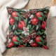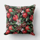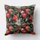 Waterverf schetste gedetailleerd sierpatroon van donkerrode granaatappelvruchten, granaatappelpitten, doorsnede van granaatappel, groene granaatappelbladeren, witte Cymbidiumbloemen, zwarte achtergrond