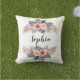 Kussen voor buitengebruik met trendy tropische waterverf met florale maag en aanpasbare naam of monogram.