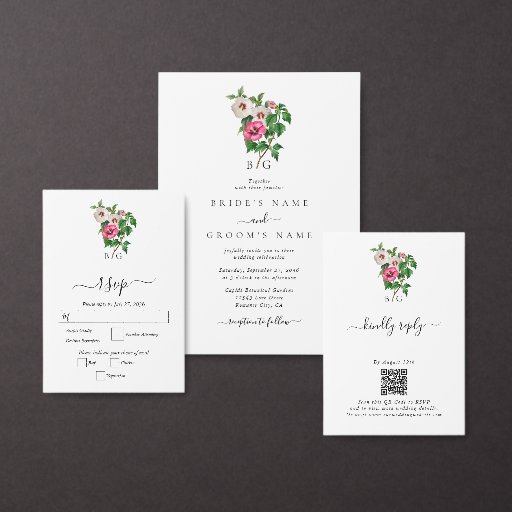 Een minimalistisch tropisch Hibiscus monogram bruiloft ontwerp. Een eenvoudig ontwerp dat gebruikmaakt van een waterverf illustraties of tropische Hibiscusbloemen om een elegant klassiek monogram te creëer. Een charmant groen en wit tropisch strandontwerp met rustieke slagen en stijlvolle scripttypografie. Een elegante botanische zomer thema bruiloft bespaart de datum kaart ontwerp met moderne elementen. Overeenkomende bruiloft uitnodigingen en andere briefpapier items zijn ook beschikbaar.