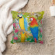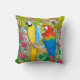 Voeg een tikje kleur toe aan je thuisdecor met deze vrolijke gooiende kussen in de grootte van je keuze, met het originele kunstontwerp van de waterverf van kleurrijke en tropische Macaw-papegaaien in het oerwoud van kunstenaar Carolyn McFann van Two Spinnende Cats Studio.