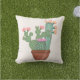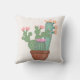 Dit trendy ontwerp is voorzien van een groot schilderij van waterverf met drie bloeiende cactus-planten, inclusief een prikkel, in een bruine terakatoenen pot. De achtergrond is een bleke schaduw van blozen. De perfecte kussen voor je geduld of dek.