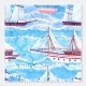 Waterverf zeilschip patroon op blauwe golvende achtergrond.Reizen cruisepatroon met wit zeiljacht in rij | © en ® Bigstock® - Alle rechten voorbehouden.