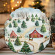 Een klassiek, tijdloos waterverf wintertafereel met huizen en schuren op een winterheuvel met sparren!