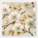 Waterverf witte bloemen Japanse kersenbloesems geschetst in goud op massieve crème achtergrond.