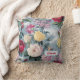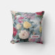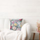 Het is een werpkussen met een illustratie van verschillende bloemen in verschillende stadia van bloei. Er zijn rode rozen, witte rozen, gele rozen, roze rozen en paarse bloemen. De achtergrond is een lichtblauwe lucht met pluizige witte wolken. Het afbeelding heeft een zachte, waterverf-achtige textuur.