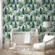 Waterverf Woodland Pine Trees Sneeuwval Behang
