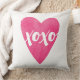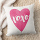 Dit werpen kussen kenmerkt een gewaagd hart van de waterverf, met een hand-geschilderd XOXO typografisch ontwerp. Ideaal voor Valentijnsdag!