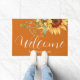 Waterverf zonnebloemen op verbrand Sinaasappel Deurmat