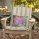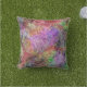 Dit buitenkussen voor uw huisinrichting heeft een werveling van kleuren in roze groen en paarse kleuren die een waterkleurige beschilderde look hebben met vage gekrabbelde lijnen.