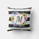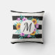 Moderne kussen in de buitenlucht met een florale waterverf op zwarte en witte gestreepte achtergrond. Pas het monogram aan door uit vele prachtige doopvonten te kiezen.