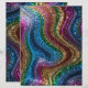 Een verbluffend abstract ontwerp met meerkleurige glitters in een golvende regenboogformatie.