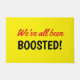 Design gezegde We zijn allemaal geboost. Rode en zwarte tekst op een gele achtergrond. Gebruik dit om iedereen uw vaccinatiestatus te vertellen. Pas dit ontwerp eenvoudig aan door de tekst van de sjabloon te bewerken of door de achtergrondkleur te wijzigen in een heldergeel. Bedankt om mijn design te bekijken!