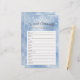 Deze teddy-rific We Can Barly Wait Pastel Blue Word Scramble Game zal je baby shower gasten grijnzen van oor tot oor. Het schattige ontwerp met een dromerig beer dat op blauwe waterverf wolken zweeft, is ideaal voor elke aanstaande baby. Dit spel is zo gemakkelijk te spelen - gewoon ontwarren de baby-gerelateerde woorden op het blad. Het is zeker om iedereen te laten mengen en lachen samen. Het aanstaande beer van de mama zal het geweldig vinden om haar dierbaren plezier te zien maken bij haar douche!