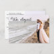Met deze minimalistische en elegante "We hebben de" aankondigingskaart en de receptie-uitnodiging geprezen! Deze eenvoudige en stijlvolle kaart voor de aankondiging van de ontwikkeling is aanpasbaar met twee van uw favoriete trouwfoto's, één aan de voorzijde, met de titels "wij hebben"in een trendy, zwart handgeschreven manuscript, en één op de rug van de kaart weggeknipt. De achterkant van de kaart is aanpasbaar met uw namen en persoonlijke boodschap met de onthulling en de informatie na de bruiloft of de viering.