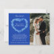 Bloem vergeet-me-nots met blauwe inkttekening en waterverf was in blauwe, gele, groene en witte tekst. We hebben het gedaan! We zijn getrouwd, een aangekondigde trouwkaart met je eigen foto aan één kant. Personaliseer met uw eigen bericht en nodig aan een partij of een post-trouwgebeurtenis, namen, en uw foto uit. Ik wil graag naar familie en vrienden sturen om hun je goede nieuws te vertellen en dat je ze niet vergeten bent. Origineel vergeten-me-niet blauw inkt lijntekening en waterverf het schilderen en ontwerp door Sarah Trett voor www.mylittleedenweddings.com slechts op Zazzle.