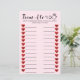 Maak je vrijgezellenfeest, vrijgezellenfeest of huwelijksfeest nog leuker met deze Wedding A to Z Game! Gasten racen om een huwelijksgerelateerd woord te bedenken voor elke letter van het alfabet, waardoor dit een snelle, interactieve en lachende activiteit is. Ontworpen met een moderne zwart-wit lay-out met schattige rode hart accenten, dit spel is gemakkelijk te spelen en perfect voor alle leeftijden. Of je nu een douche, verlovingsfeest of repetitiediner organiseert, dit afdrukbare trouwspel is een geweldige manier om vrienden en familie samen te brengen voor een onvergetelijke tijd! - voeg je persoonlijke draai toe voor je aankomende evenement! Vragen over het ontwerp? Bericht me. Vragen over uw bestelling? Neem dan contact op met de Zazzle service. Bedankt! 📌 Perfect voor: ✔️ Huwelijksrecepties & Cocktail Hour ✔️ Vrijgezellenfeesten & vrijgezellenfeesten ✔️ Verlovingsfeesten & repetitie diners ✔️ Gasttafelactiviteiten & ijsbrekers 🎉 Voltooi het Collectie! Combineer deze bruiloft woord zoeken met onze andere bijpassende bruiloft games voor een samenhangende en stijlvolle evenement ervaring.