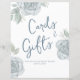 Dit ontwerp is voorzien van een brutaal, bloemblauw, receptiebordsignaal, signaalsignaalteken, kaarten en cadeaubonbord, een trendy, stijlvol kalligrafiescript lettertype, een whimsical typografie lettertype, klassieke, welkome gast, een eenvoudige, moderne kalligrafie, een simplistische elegantie met minimale stoffige blauwe, schone en minieme afbeelding, klassieke bride en groom