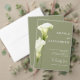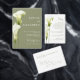 This wedding invitation features a sophisticated, minimalist style. Delicate calla lilies in soft green hues are depicted against a light background, creating an atmosphere of sophistication and tranquility. The design is modern, airy, and perfect for a stylish, romantic wedding.