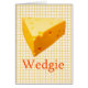 Gele gele achtergrond met een kaasblok, Wedgie genaamd