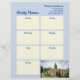 Ontworpen op basis van mijn waterverf schilderij van Castle Howard in North Yorkshire, Engeland. Een prachtige tuin en statig huis in North Yorkshire, Engeland. Het ontwerp is voor weekplanner verdeeld in zeven dagelijkse secties, het is ook dubbelzijdig. Het heeft een effen lichtblauwe achtergrond en kan worden aangepast met uw eigen teksten.