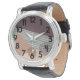 Dit mannen horloge heeft een middeleeuws abstract ontwerp van een blauwe lijn, een bruine driehoek en een bruine cirkel gemaakt van stippen op een veld van donkere aubergine en room. Als je hetzelfde ontwerp met verschillende kleuren wilt, stuur me een bericht.