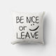 Een simpele en zoete gooiende kussen die simpelweg lezen: "Wees aardig of laat". Genoeg gezegd, toch?
